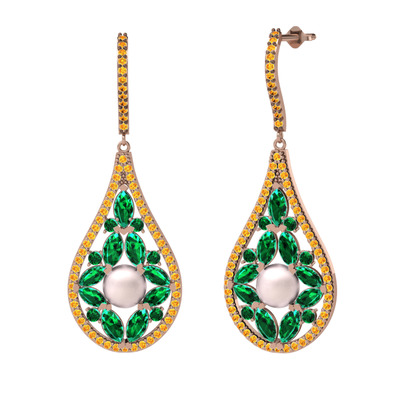 Pembe inci, yeşil kuvars ve sitrin 925 ayar rose altın kaplama gümüş küpe