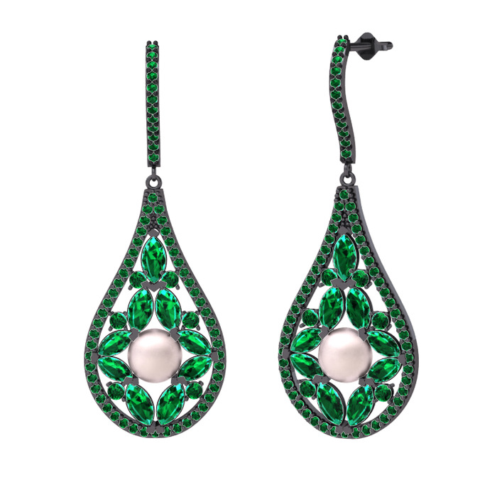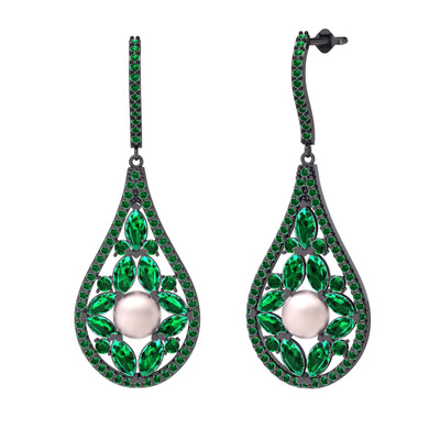 Pembe inci ve yeşil kuvars 925 ayar siyah rodyum kaplama gümüş küpe