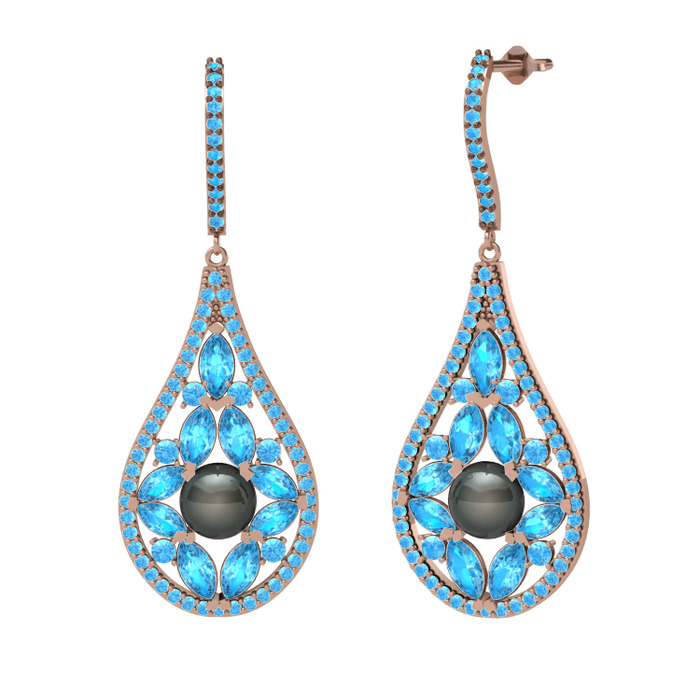 Siyah inci ve akuamarin 18 ayar rose altın küpe