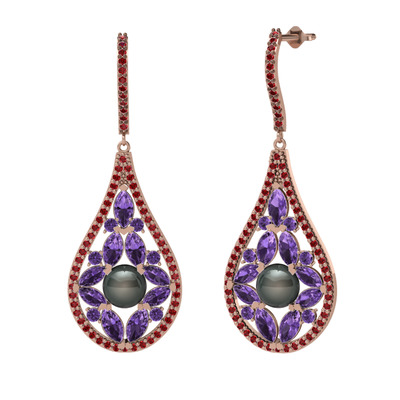 Siyah inci, ametist ve garnet 18 ayar rose altın küpe