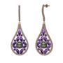 Siyah inci, ametist ve pırlanta 925 ayar rose altın kaplama gümüş küpe (1.11 karat)