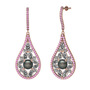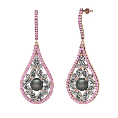 Siyah inci, beyaz zirkon ve pembe kuvars 8 ayar rose altın küpe