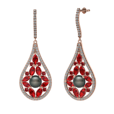 Siyah inci, garnet ve beyaz zirkon 925 ayar rose altın kaplama gümüş küpe