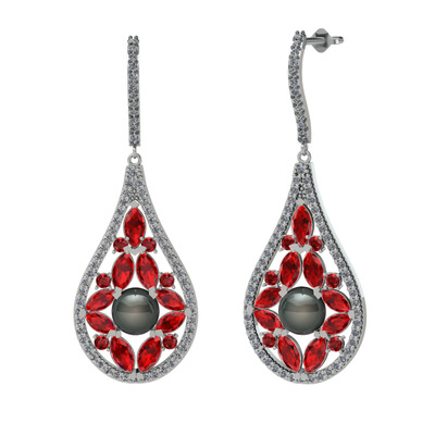 Siyah inci, garnet ve pırlanta 18 ayar beyaz altın küpe (1.11 karat)