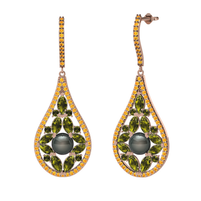 Siyah inci, peridot ve sitrin 18 ayar rose altın küpe