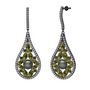 Siyah inci, peridot ve swarovski 925 ayar siyah rodyum kaplama gümüş küpe