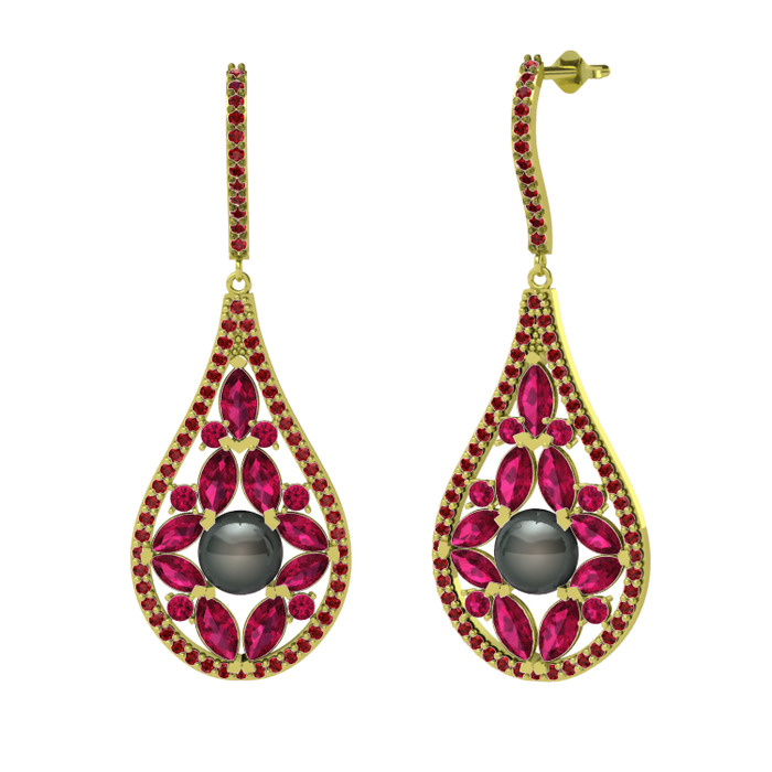 Siyah inci, rodolit garnet ve garnet 14 ayar altın küpe