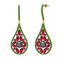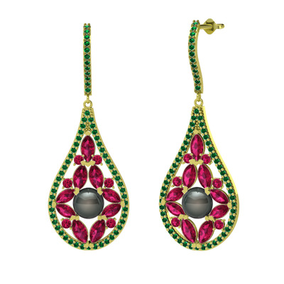 Siyah inci, rodolit garnet ve yeşil kuvars 925 ayar altın kaplama gümüş küpe