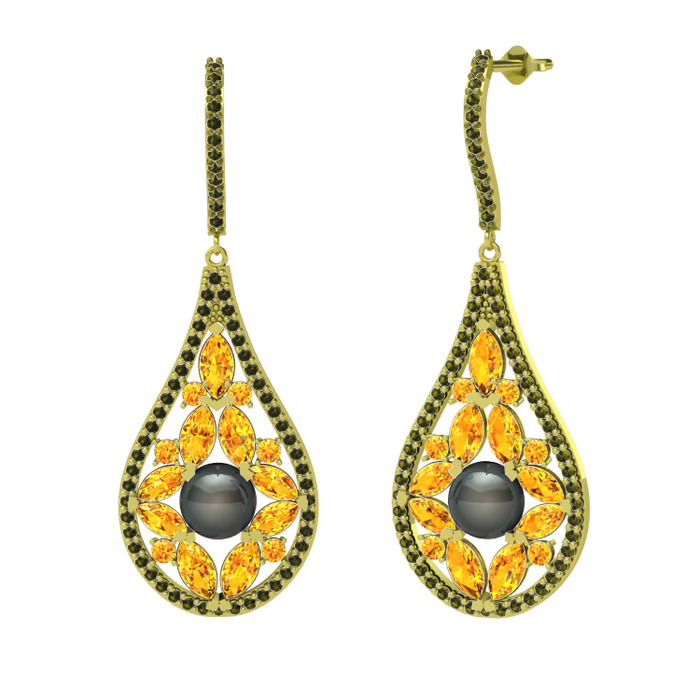 Siyah inci, sitrin ve peridot 8 ayar altın küpe