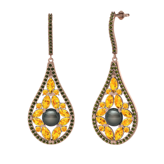 Siyah inci, sitrin ve peridot 8 ayar rose altın küpe