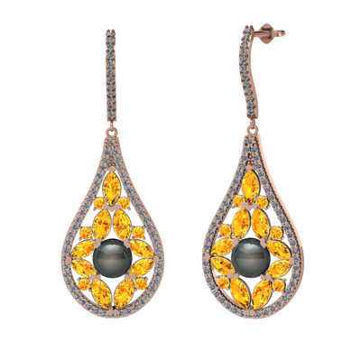Siyah inci, sitrin ve pırlanta 14 ayar rose altın küpe (1.11 karat)