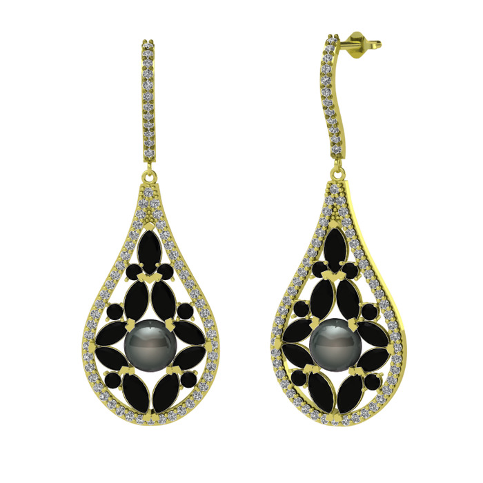 Siyah inci, siyah zirkon ve beyaz zirkon 14 ayar altın küpe