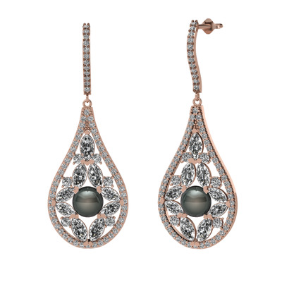 Siyah inci, swarovski ve beyaz zirkon 925 ayar rose altın kaplama gümüş küpe