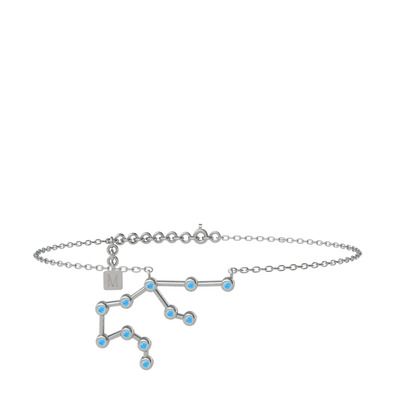 Akuamarin 14 ayar beyaz altın bilezik (20 cm gümüş rolo zincir)