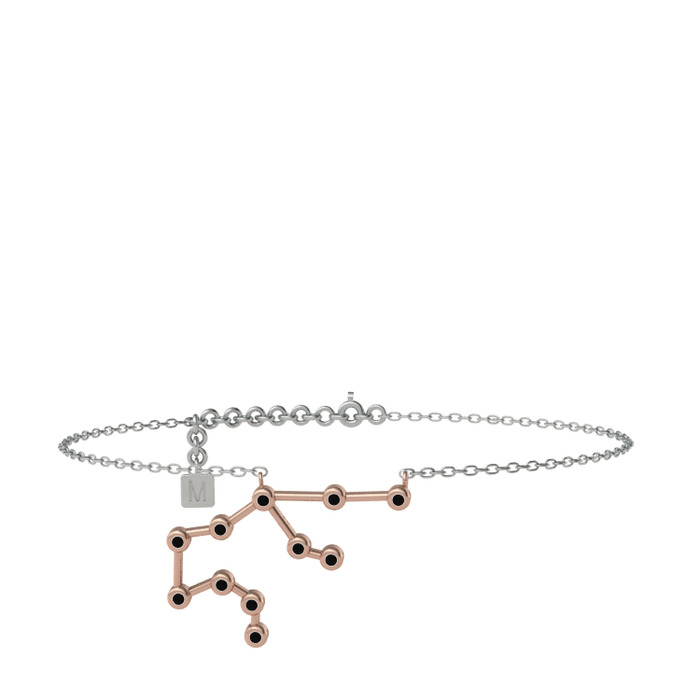 Siyah zirkon 18 ayar rose altın bilezik (20 cm beyaz altın rolo zincir)