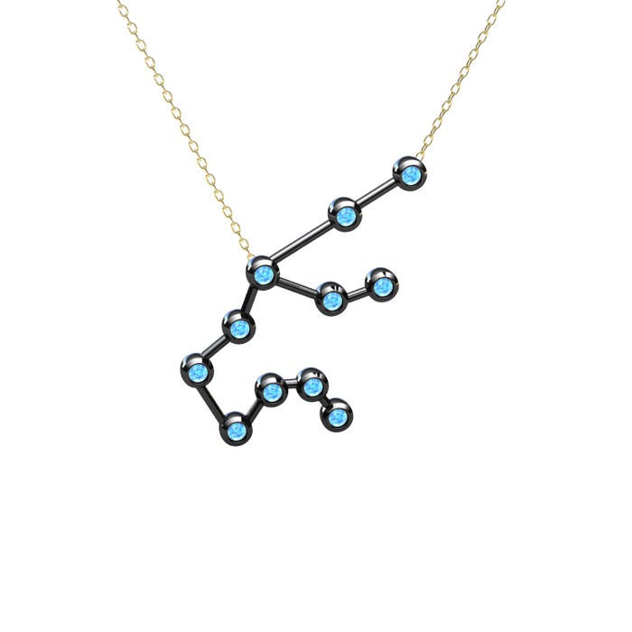 Akuamarin 925 ayar siyah rodyum kaplama gümüş kolye (40 cm altın rolo zincir)