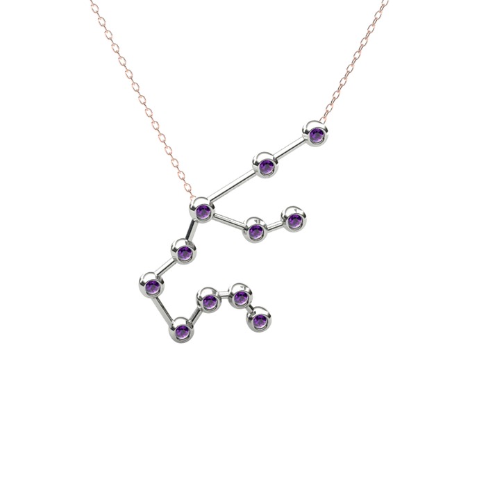 Ametist 14 ayar beyaz altın kolye (40 cm rose altın rolo zincir)