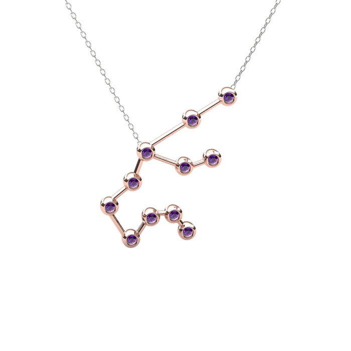 Ametist 925 ayar rose altın kaplama gümüş kolye (40 cm gümüş rolo zincir)
