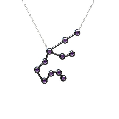Ametist 925 ayar siyah rodyum kaplama gümüş kolye (40 cm beyaz altın rolo zincir)