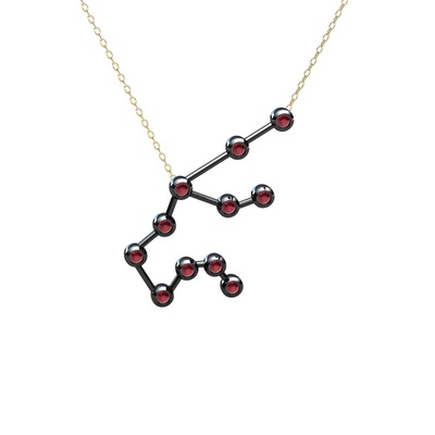 Kök yakut 925 ayar siyah rodyum kaplama gümüş kolye (40 cm altın rolo zincir)