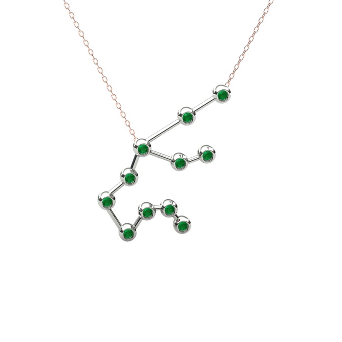Kök zümrüt 18 ayar beyaz altın kolye (40 cm rose altın rolo zincir)