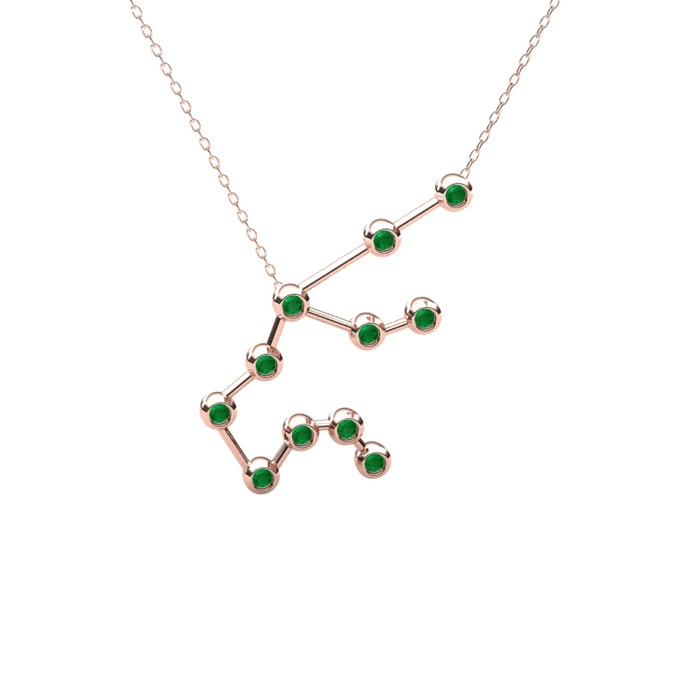 Kök zümrüt 18 ayar rose altın kolye (40 cm rose altın rolo zincir)