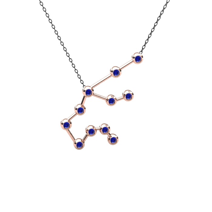 Lab safir 14 ayar rose altın kolye (40 cm gümüş rolo zincir)