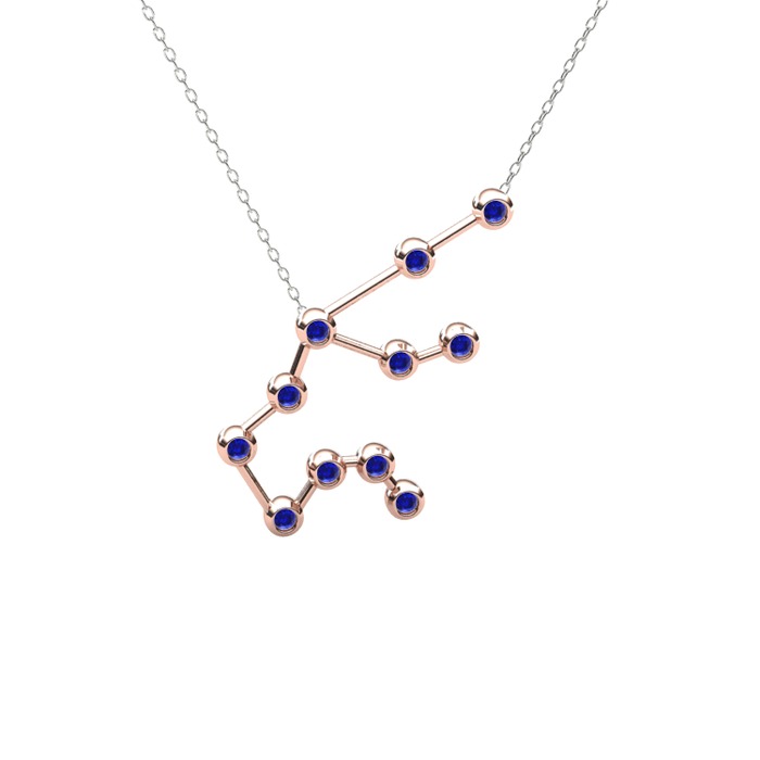 Lab safir 14 ayar rose altın kolye (40 cm gümüş rolo zincir)