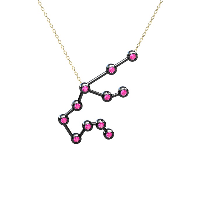 Pembe kuvars 925 ayar siyah rodyum kaplama gümüş kolye (40 cm altın rolo zincir)