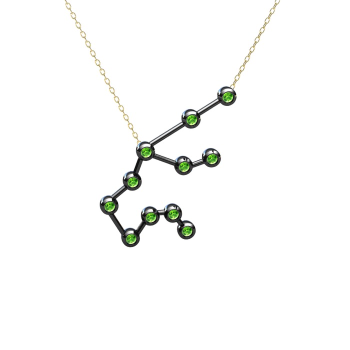 Peridot 925 ayar siyah rodyum kaplama gümüş kolye (40 cm altın rolo zincir)