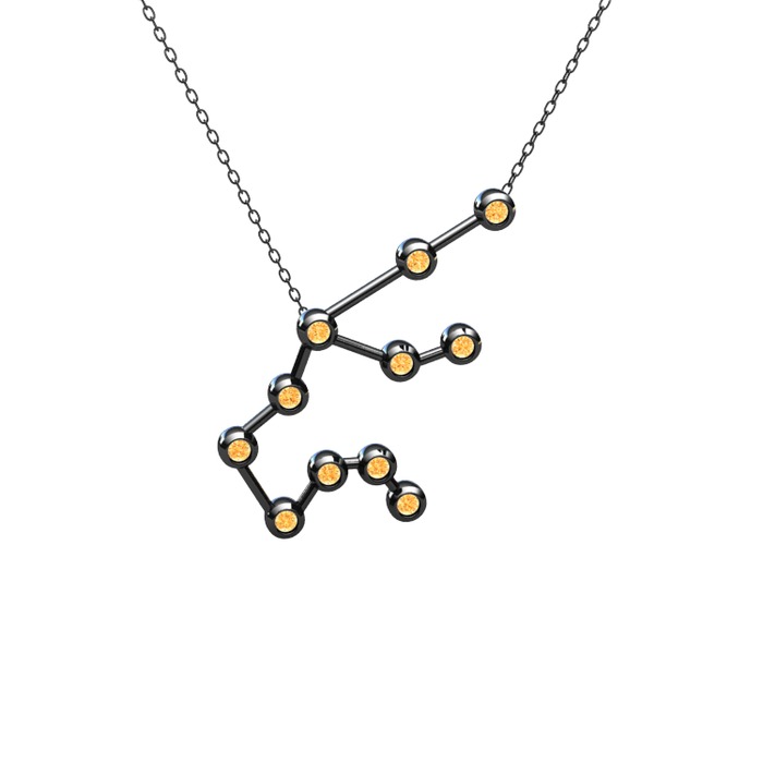 Sitrin 925 ayar siyah rodyum kaplama gümüş kolye (40 cm gümüş rolo zincir)