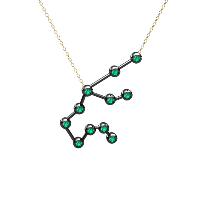 Yeşil kuvars 925 ayar siyah rodyum kaplama gümüş kolye (40 cm altın rolo zincir)
