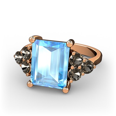 Akuamarin ve dumanlı kuvars 14 ayar rose altın yüzük