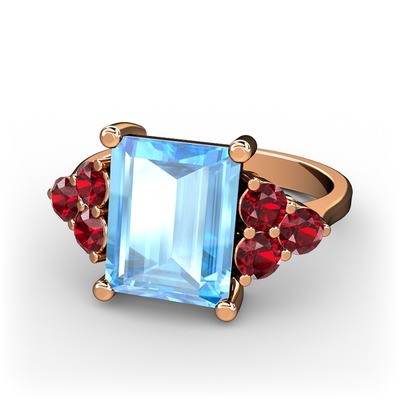 Akuamarin ve garnet 925 ayar rose altın kaplama gümüş yüzük