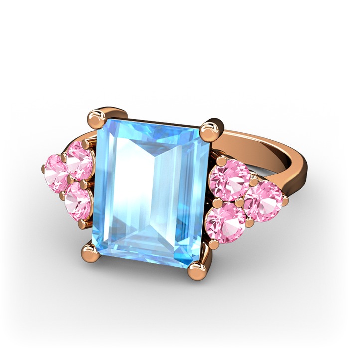 Akuamarin ve pembe kuvars 18 ayar rose altın yüzük