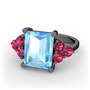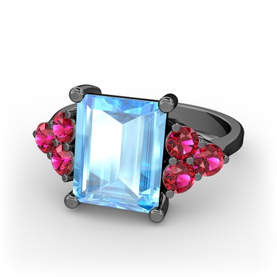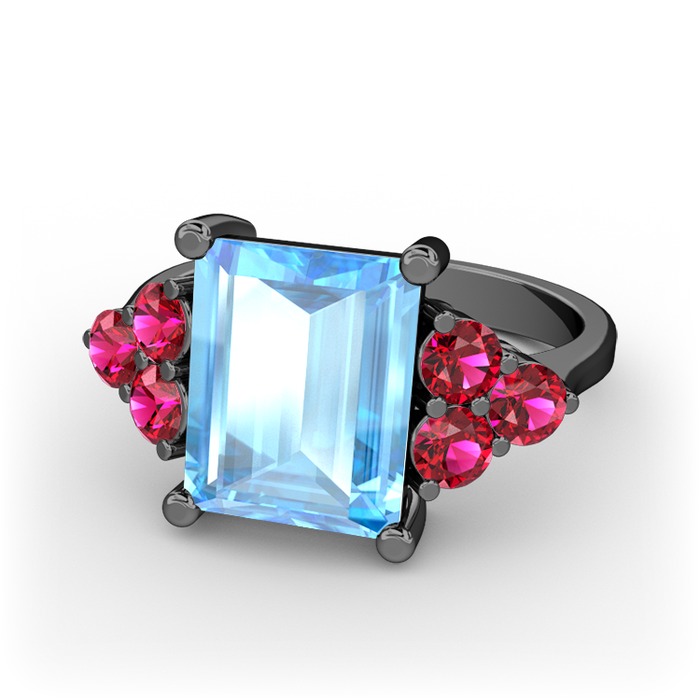 Akuamarin ve rodolit garnet 925 ayar siyah rodyum kaplama gümüş yüzük
