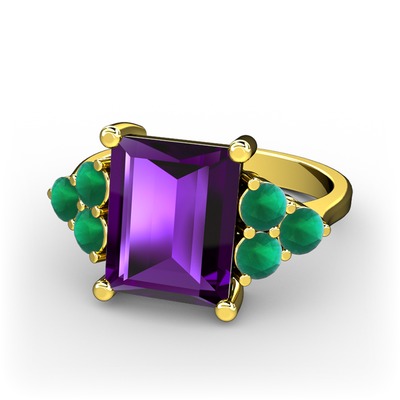 Ametist ve kök zümrüt 14 ayar altın yüzük