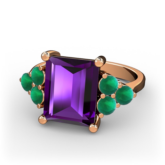 Ametist ve kök zümrüt 14 ayar rose altın yüzük