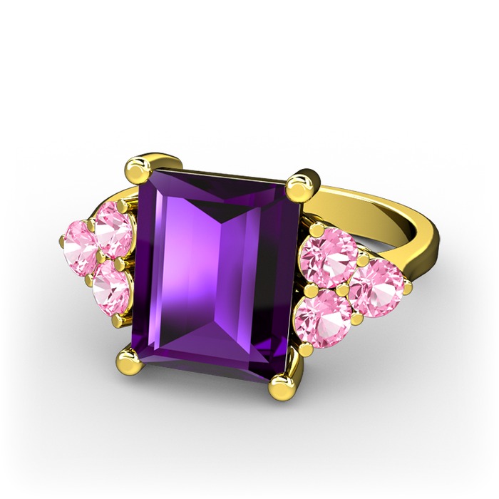 Ametist ve pembe kuvars 14 ayar altın yüzük