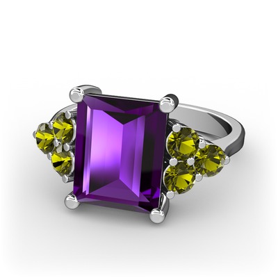 Ametist ve peridot 14 ayar beyaz altın yüzük