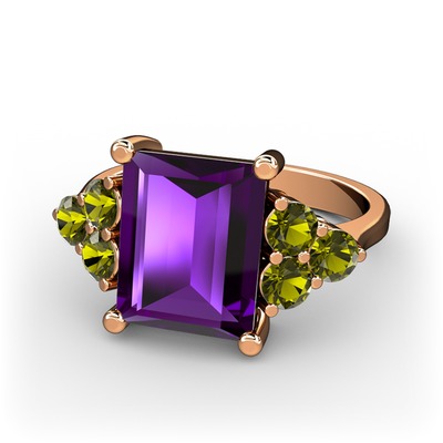 Ametist ve peridot 18 ayar rose altın yüzük
