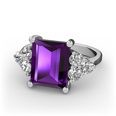 Ametist ve pırlanta 18 ayar beyaz altın yüzük (0.48 karat)