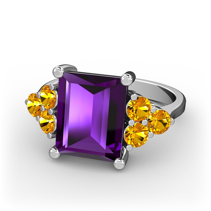 Ametist ve sitrin 18 ayar beyaz altın yüzük