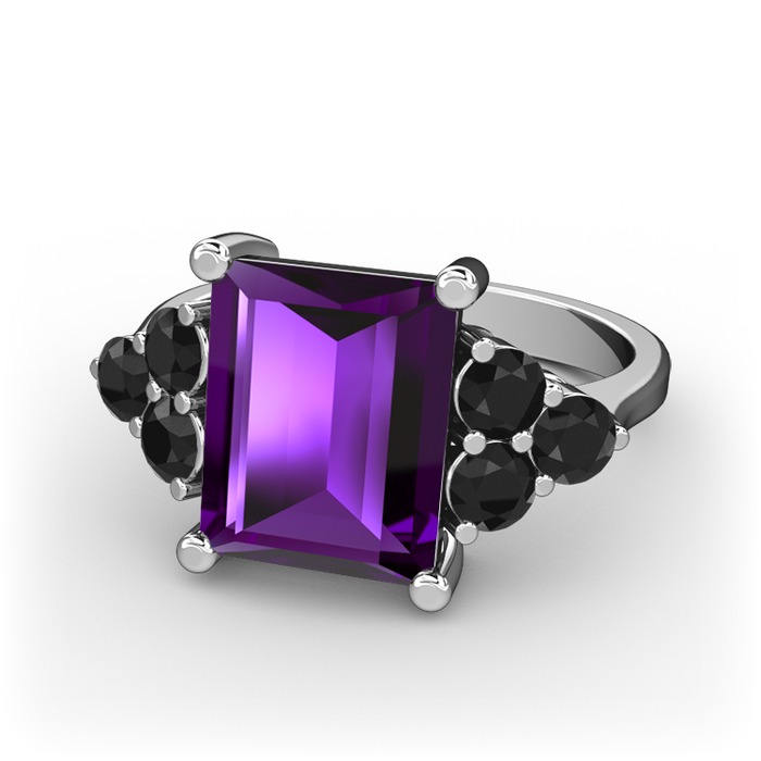 Ametist ve siyah zirkon 8 ayar beyaz altın yüzük