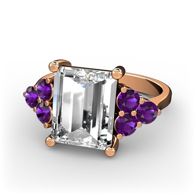 Beyaz zirkon ve ametist 18 ayar rose altın yüzük