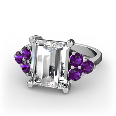 Beyaz zirkon ve ametist 8 ayar beyaz altın yüzük