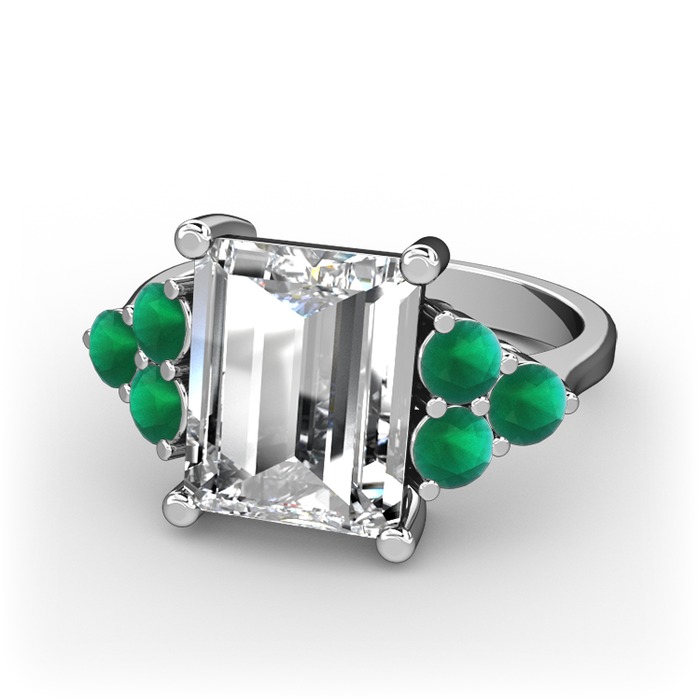 Beyaz zirkon ve kök zümrüt 8 ayar beyaz altın yüzük