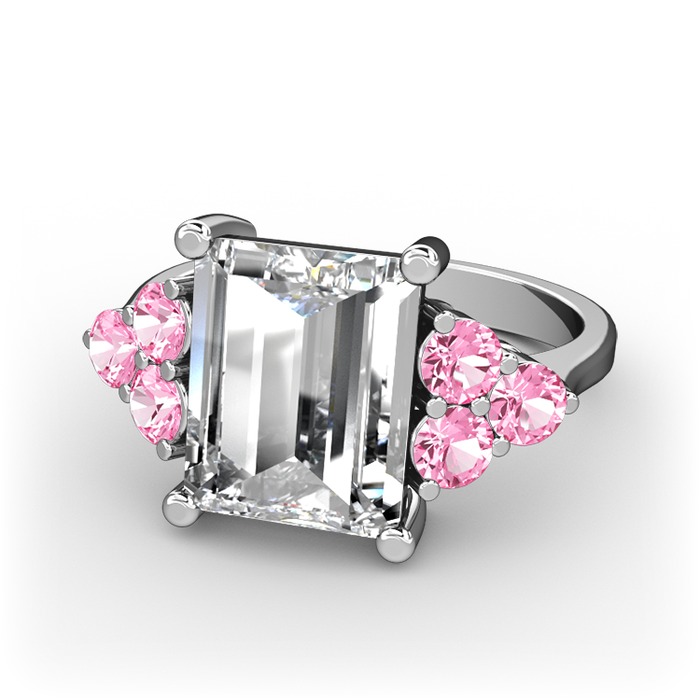 Beyaz zirkon ve pembe kuvars 925 ayar gümüş yüzük