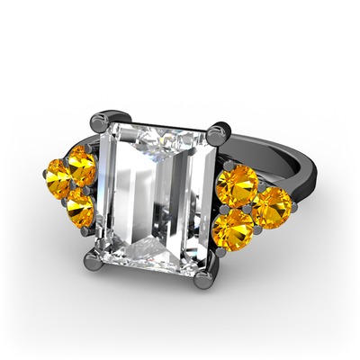 Beyaz zirkon ve sitrin 925 ayar siyah rodyum kaplama gümüş yüzük