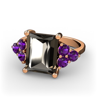 Dumanlı kuvars ve ametist 925 ayar rose altın kaplama gümüş yüzük
